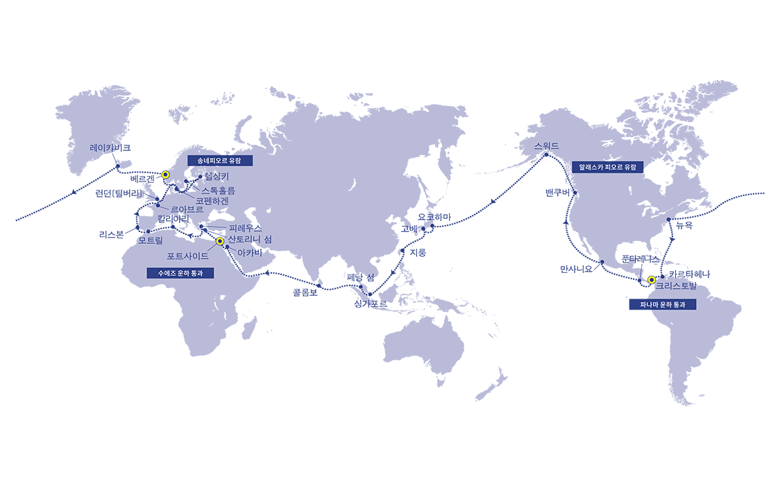 여유로운 선내 공간과 여행을 위한 다양한 시설을 갖춘 본 객선은 승객분 한분 한분에 대해 안전하고, 안심하고 즐길수 있는 세계일주 크루즈 환경을 제공합니다
